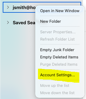 Your account has now been added and you will be shown the usual email view. You will want to set up the name shown against your email, so right-click on the account and pick Account Settings or pick Accounts... from the Tools menu.